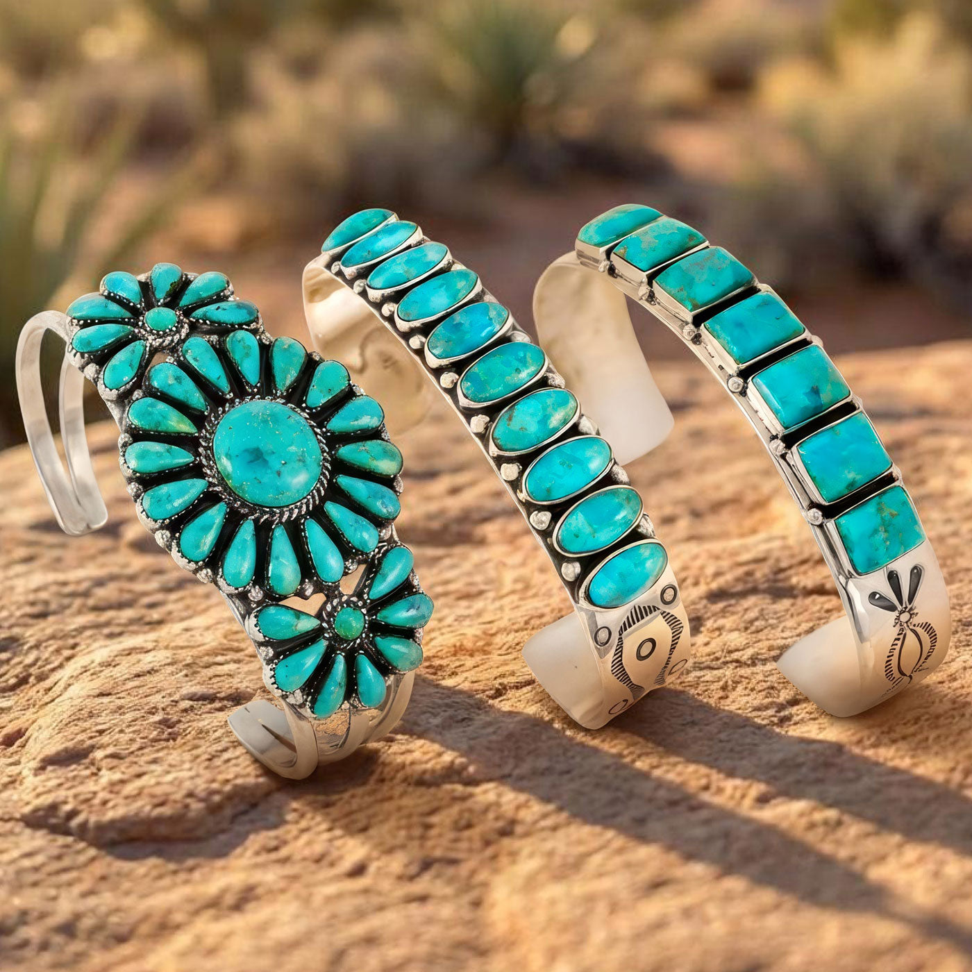 Discover our beautiful collection of turquoise bracelets, each carefully crafted to showcase the natural beauty of the stone. Featuring high-quality stones set in sterling silver, these real turquoise bracelets and authentic turquoise bracelets combine style, elegance, and durability.